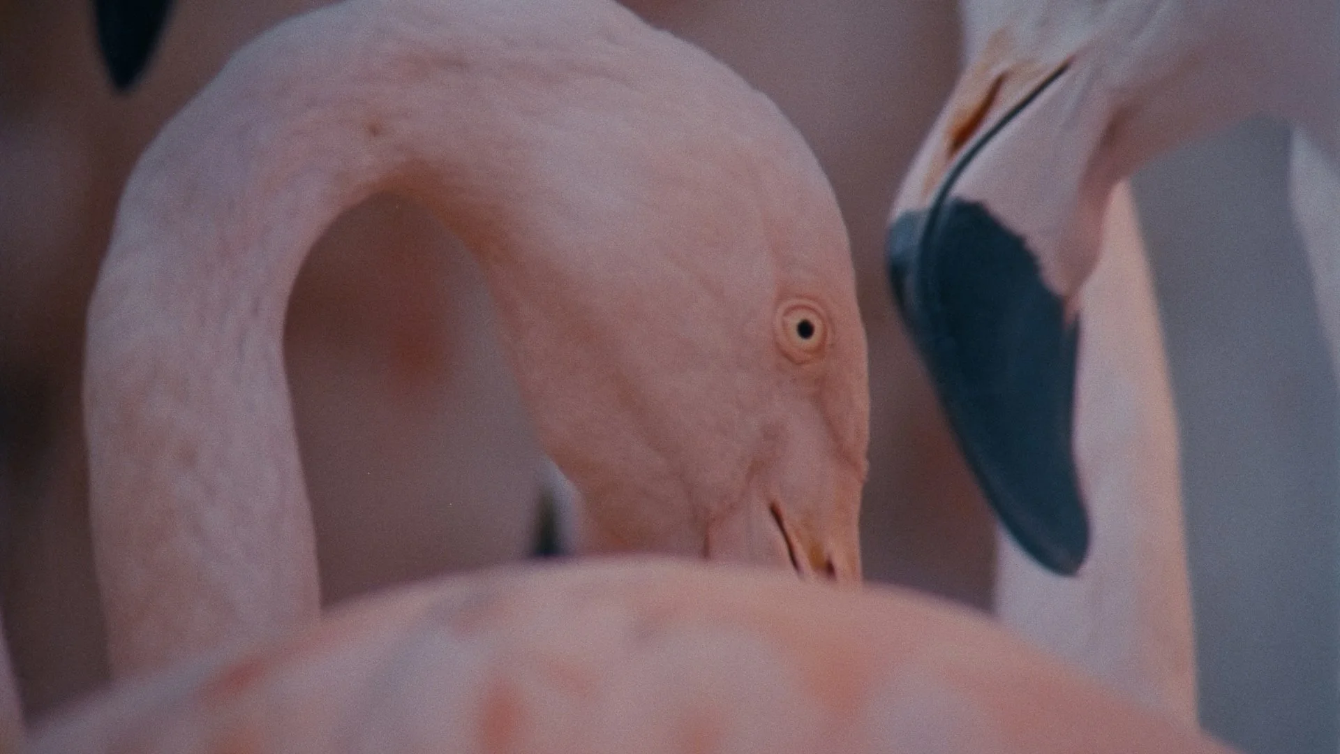 Sound plays an equally vital role in the documentary's overall sensorial impression. The work downplays the verbal interaction between the park's employees (typically presented through voicovers of radio or voice messages) instead focusing on its ambient noises: the opening and closing of cages, the constant sounds of the surrounding city, the squawks of parrots, and the honks of flamingos. A remarkable example of Rineland's exceptional attention to the soundscape of the work is a relatively straightforward moment, a close-up of giant tortoises preparing for feeding time, as their shells bump into one another with unbelievably pleasing clangors that would make any ASMR YouTuber envious. By downplaying traditional narration in this manner, Collective Monologue fully plunges the viewer into the park's soundscape and the closed-off microcosm within its boundaries.